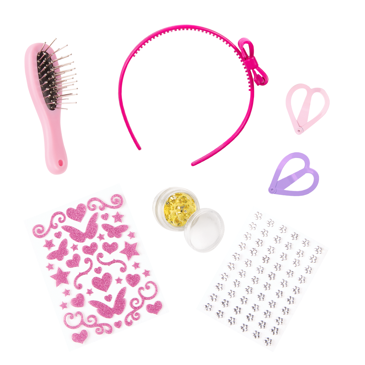 Practice makes perfect, and the Our Generation Trista Styling Head is a great way to practice styling, decorating, and creating new hairstyles – for yourself and your dolls! The included booklet has instructions on how to do unique hairstyles... and with your imagination, you can create so many more! Try the styles on Trista and then repeat them on yourself for twinning moments! This beautiful 23cm doll styling head is the perfect place to test out your sparkling ideas.