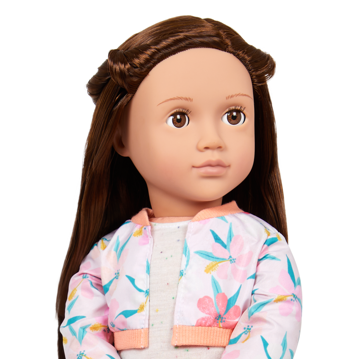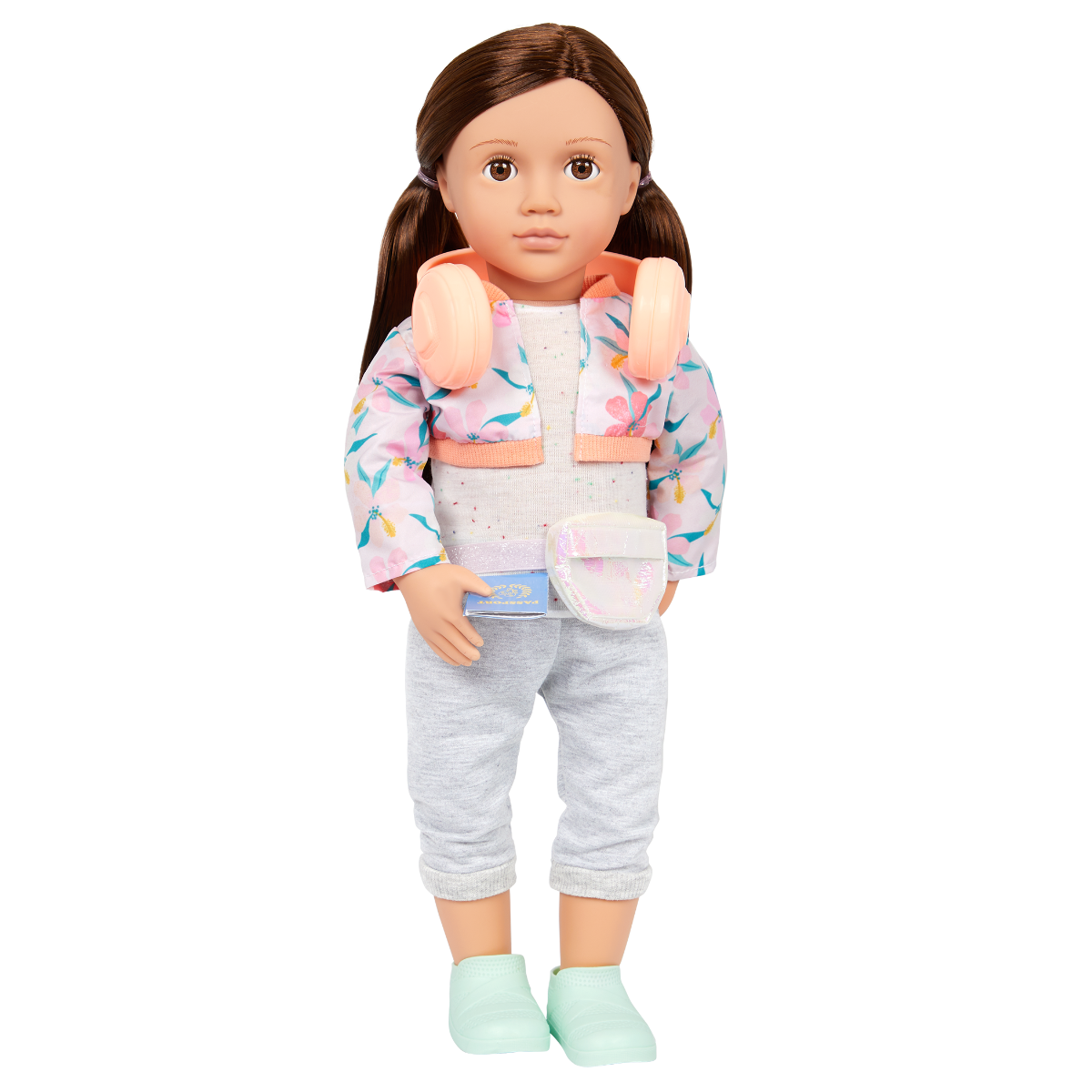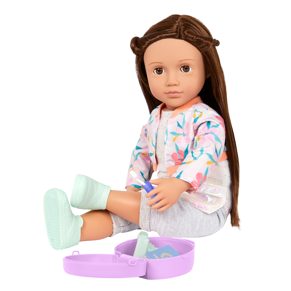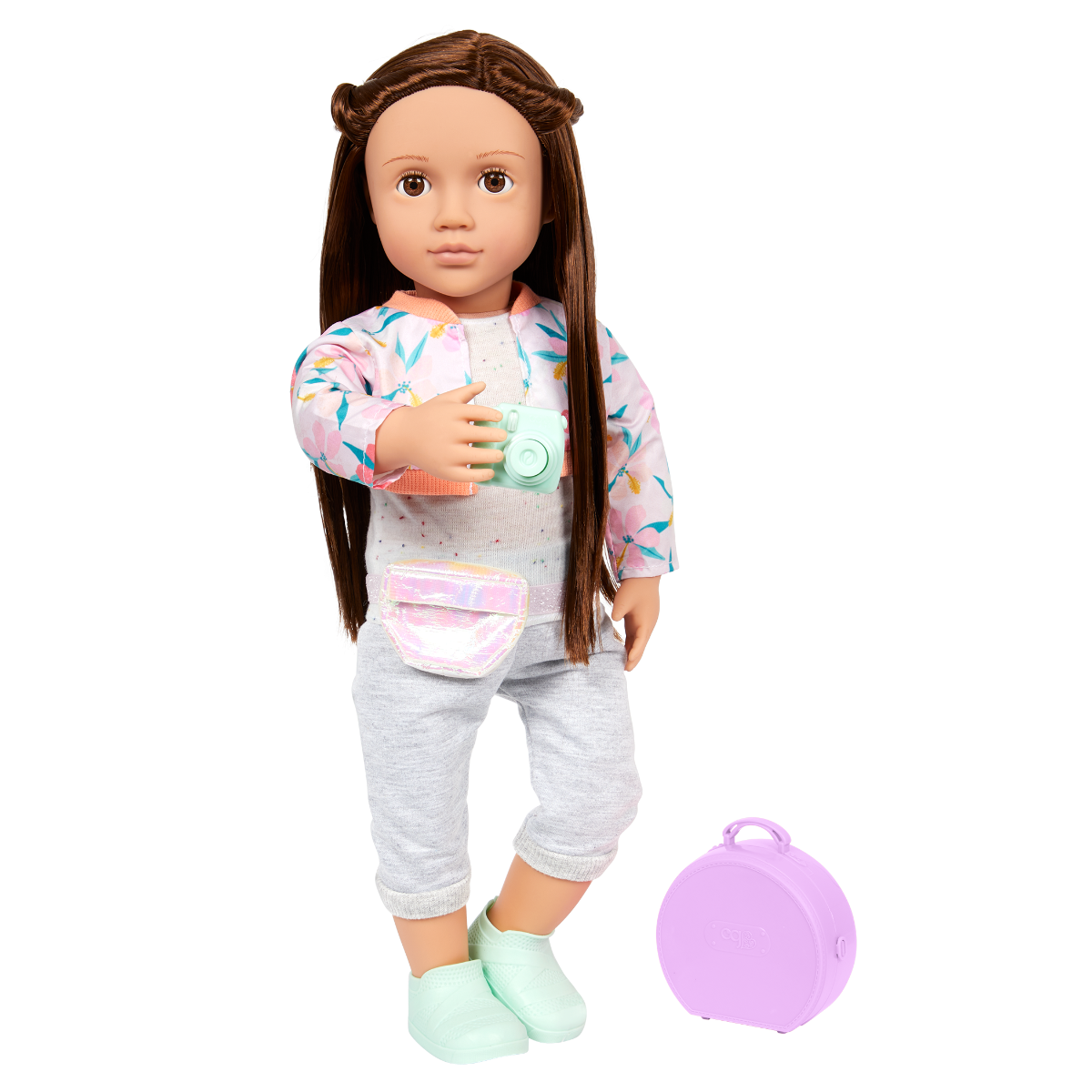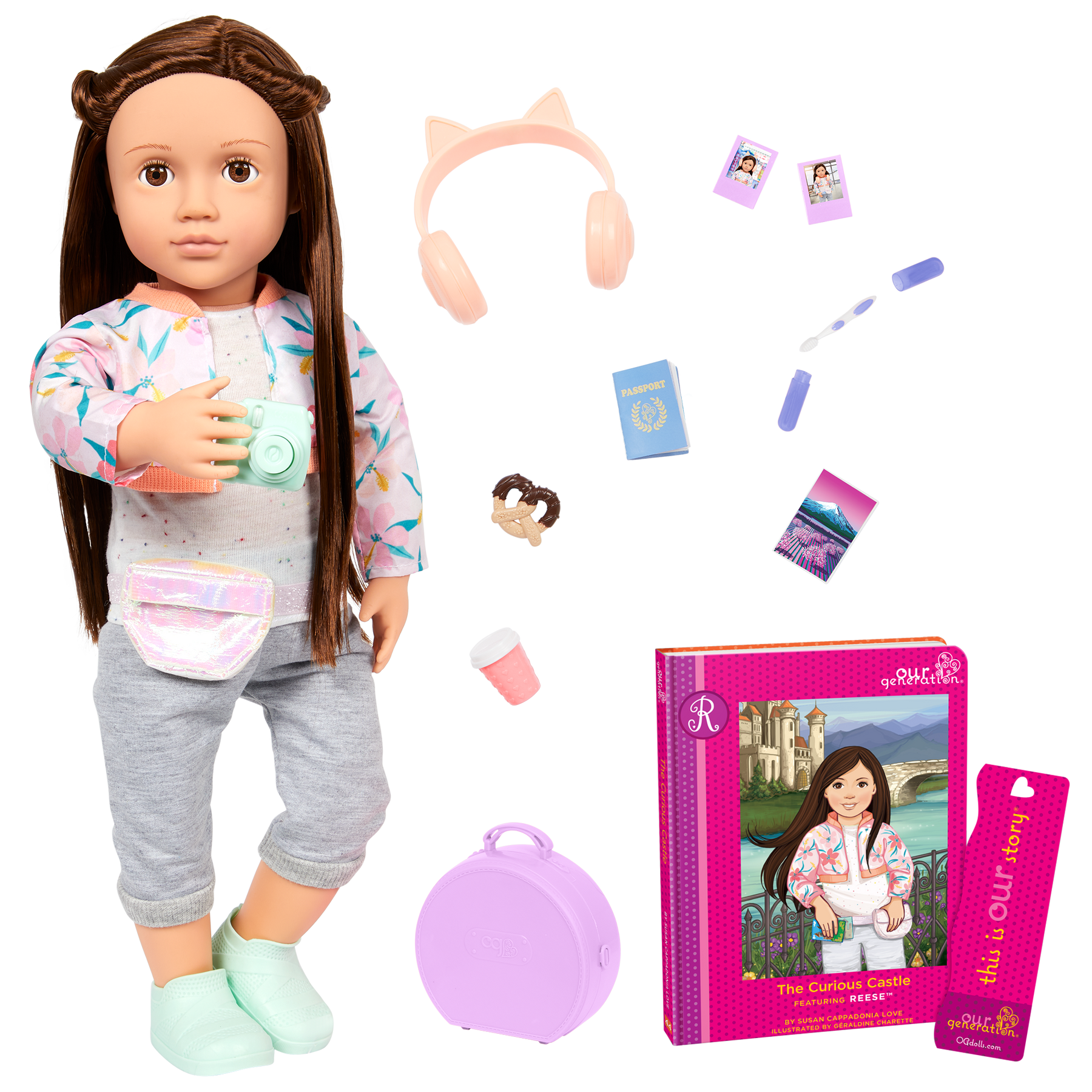 Explore the world and follow your dreams with Reese! This Our Generation 46cm doll has beautiful brown eyes that open and close with long brown hair to style. And she's posable! She can bend her arms and legs to easily change outfits during dress-up and travel the world with her fun accessories. Reese arrives wearing a casual top, a pretty floral jacket, capri pants, and a fanny pack. She also has a passport, carry-on luggage, cat-ear headphones, a camera, 2 photos, a travel mug, a toothbrush and case, and a yummy pretzel. Reese loves castles, and travelling the world to see them up close is one of her favourite activities. Follow Reese's adventures in her storybook, The Curious Castle, and create your own stories with this inspiring collection. The easy-to-read chapters are perfect for younger readers and make for a great bedtime story too!