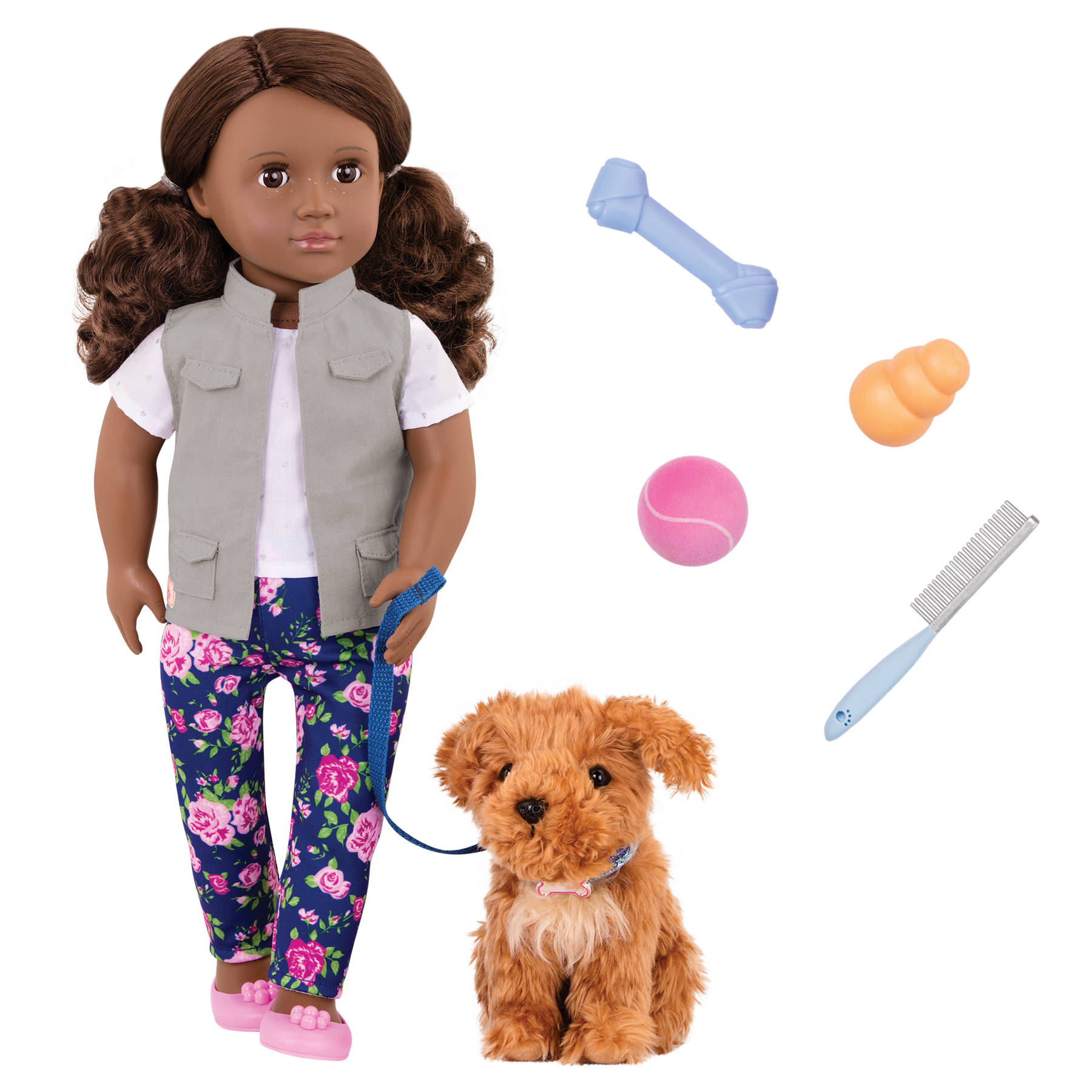 Whether your little one is playing dollhouse with friends at home or having fun on a road trip with the fam, the Our Generation Doll & Pet Malia with Poodle can join in on the fun. Your cutie will love the company of Malia and her BFF Poodle. The playset includes Malia, an 46cm doll with brown eyes, curly brunette hair and a vest. She is accompanied by her 15cm furry puppy toy that brings endless hours of creative play! Great for playdates and sleepovers, the doll set comes with dog accessories that will definitely appeal to little animal lovers while teaching them how to engage and take care of pets.